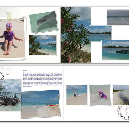 We designed layouts for travel and vacations albums, portfolios, baby books, school and sports catalogues.
