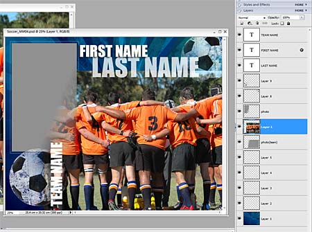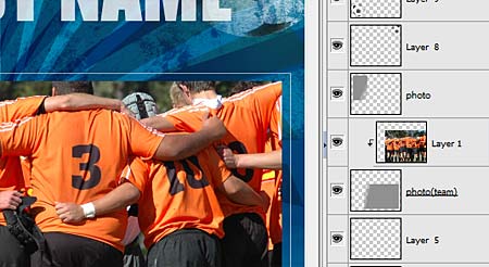 Once the image is a part of the template as a new layer, place the layer (by dragging under the layers palette) right on top of the "photo" layer.